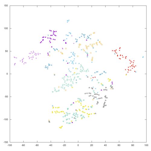 はじめに 最近よく見かける「t-SNE」という非線形次元圧縮手法を試してみた。 t-SNEとは t-Distributed Stochastic Neighbor Embedding SNEと呼ばれる次元圧縮手法の問題点を改善した手法 SNEは、「各点間の"ユークリッド距離"を、類似度に相当する"条件付き…